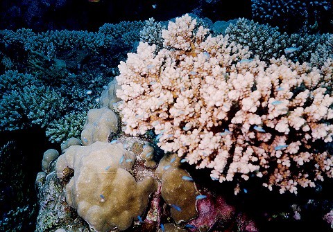 Blue-green Chromadoris in Staghorn Coral